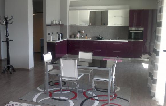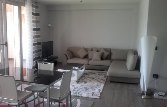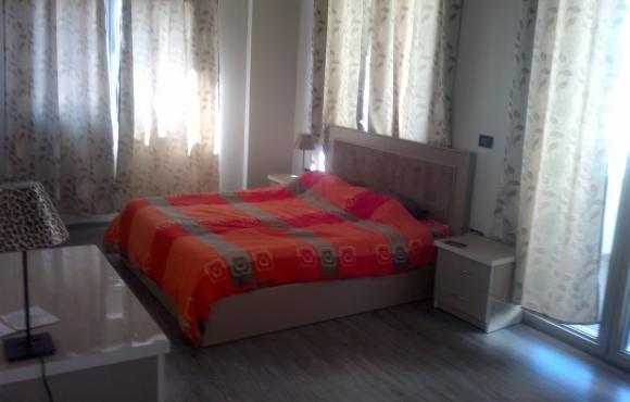 We are pleased to bring you for rent this beautifully presented 2 bedrooms apartment, with a surface of 157sq., based on the sixth floor with elevator. The property is located in “Sami Frasheri ” Street at NOBIS complex and benefits from being close to all amenities. It oriented to North – South and comprises of two bedrooms, a large living room where dining area with table and 4 chairs are included, kitchen with all needed equipments, 2 bathrooms with shower and bathtub, two balconies and an underground parking space. The apartment is totally furnished with contemporary furnishings making this apartment welcoming.