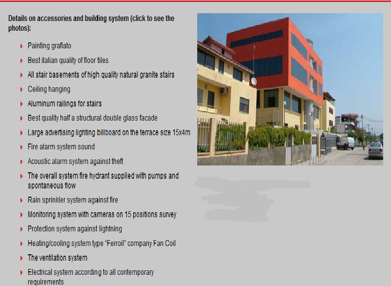 Entrance of Durres, Lagjia 17 (close to Galactic Trade Center). Durresi is the second administrative city in Albania and the most important one in the national economic development. Throughout history the city of Durres has been a strategic point between east and west. The facts of the largest country port, the new hydrocarbons port, the industrial areas master plan approved in Albania, the proximity to the airport, the strategic position for transports not only for north & south Albania, but across the 8 corridor and with Kosovo, Macedonia and beyond Bulgaria and Romania, presents a very good economic growth perspective of the area. PRICE In relation to the market area and the construction price is very occasional. DATA OF CONSTRUCTION, PROTECTION AND SERVICE SYSTEM:Construction is performed by contemporary and on system seismic parameters.