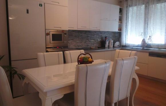 Very nice three bedrooms apartment is available for rent, with wooden floors, with a surface of 1550sqm, located in “Sami Frasheri” Street, at NOBIS Complex. This property is a new construction, based on the sixth floor with elevator, and comprises of a large living room, separate modern fully equipped kitchen with all electrical appliances and all kitchen utensils, hall , two bathrooms, one balcony as well as underground parking space. The apartment is totally furnished with contemporary furnishings, and it offers nonstop water / electricity, internet connection and has security present for 24 hours a day as well as air conditioning for all rooms.