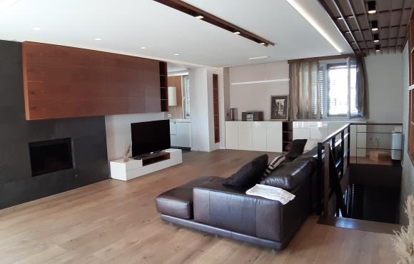 It is offered for rent this beautiful duplex apartment, very modern e new, situated on the 5th and 6th floors, so on the last 2 floors of a new and very well maintained building close to the Italian Ambassador Residence, in the area of the Str. Budi. It is composed of 2 regular bedrooms and one study (office) area on the 5th floor, where the master bedroom has its private bathroom  and there is another bathroom with the bathtub on this floor. On the upper floor, there is the large living area and the dining area, the kitchen completed with all the needed appliances. In the living area there is also a very nice and functional fire place. From the living area there is access to a veranda. This apartment has a total gross surface of 220 m² and there are 2 closed garages underground the building for this apartment. It is offered furnished and is equipped with a very good Chiller A/C system for heating and cooling and a solar panel for heating the water. Oriented to the South-East which means it has natural light during the day.