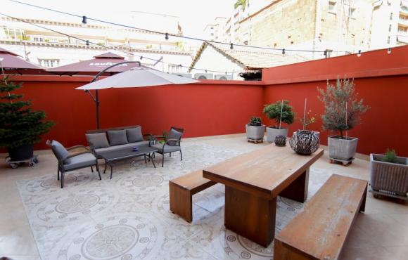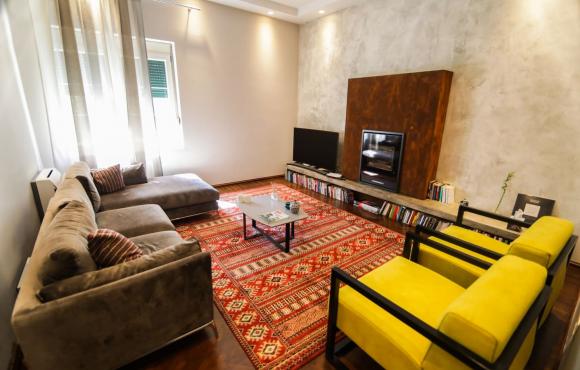 Offered for rent this very beautiful, cozy and modern apartment located in the Center of Tirana, few meters away from the "Skanderbeg"  Square, just beside the Tirana International Hotel. The apartment has 2 bedrooms, the large living area , the kitchen separated from the living area, 2 bathrooms and a very nice and large veranda accessed from the kitchen. It has a surface approximately 205 m² and is situated in the 3rd floor. Totally renovated recently, by refining the parquet which is original wood parquet, changing the windows and the doors, it has become a very attractive and pleasant apartment with a very nice large veranda. There is installed the central heating system in each room, kitchen, living area from the chimney which is working with the material of "Pellets". But of course there is installed even the air condition system for heating and cooling both. The apartment is in fact very spacious and high, it has the height of 3.50 m. Actually the second bedrooms is in fact empty but in general the apartment is offered for rent furnished. The rent price will include only the withholding tax.