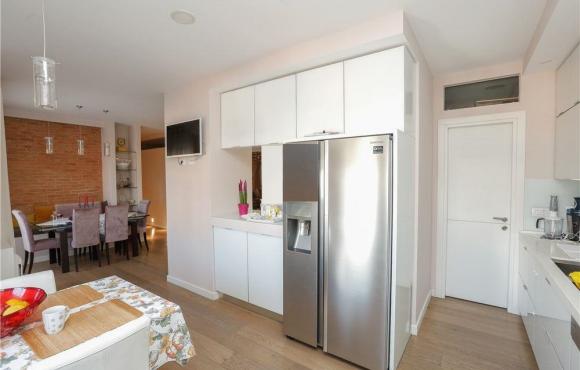 Ofrohet per Qera ky apartament fantastik, i kategorise luks, shume i bukur dhe modern i ndodhur ne katin e 5 te nje godine shume te re te ndertuar se fundmi ne zonen e Radio Televizionit Shqipetare, prane Piramides dhe ETC. I perbere nga 3 dhoma gjumi, ku dhoma matrimoniale ka tualetin privat, ambjenti i ndenjes dhe i ngrenies se bashku, kuzhina e gatimit e veçuar, nje tualet i dyte ne korridor dhe nje ballkon mjaft i madhe i orientuar dhe me pamje te lire nga Jugu, ka nje siperfaqe totale prej gati 200 m². Orientimi i tij, pra ne Jug, i jep drite natyrale pothuajse gjate gjithe dites apartamentit. Ka te instaluar nje sistem Chiller te ngrohje-ftohje, dyshemeja eshte e shtruar me parket druri industrial i kategorise shume te mire. Rifiniturat moderne dhe punimet shume te mira te brendshme e bejne kete apartament te bej pjese ne kategorine luks. Apartamenti ofrohet pjeserisht i mobiluar, pra jo te gjitha mobiljet e prezantuara ne foto jane aktualisht dhe ka te rezervuar edhe vendparkim ne katin nentoke te pallatit. Pallati eshte nje nder me te miret ne Tirane, i ndertuar se fundmi, me cilesi te lart te ndertimit dhe me nje administrim shume te mire. Cmimi i ofruar, perfshine vetem tatimin mbi qerane.